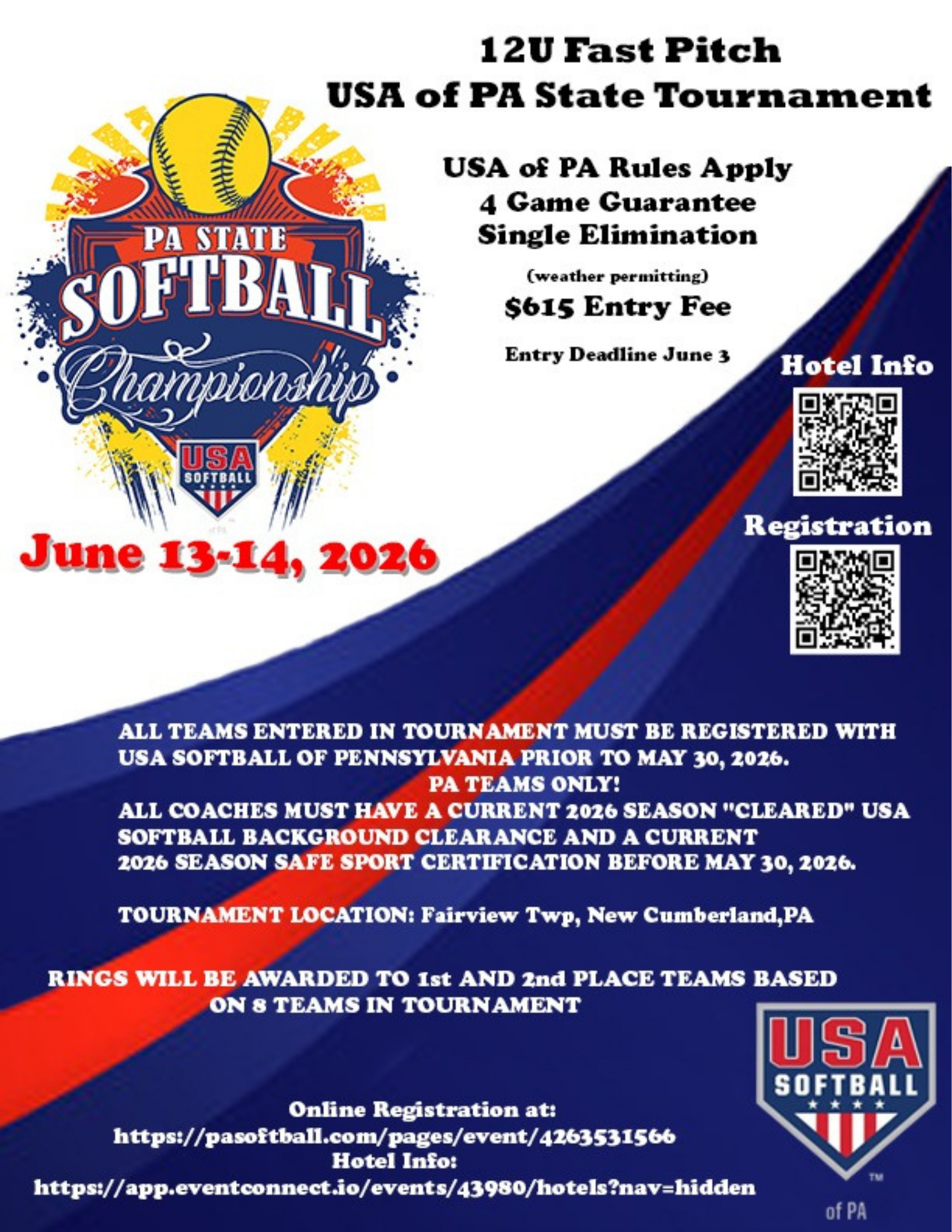 GIRLS’ 12U FAST PITCH USA OF PA STATE TOURNAMENT