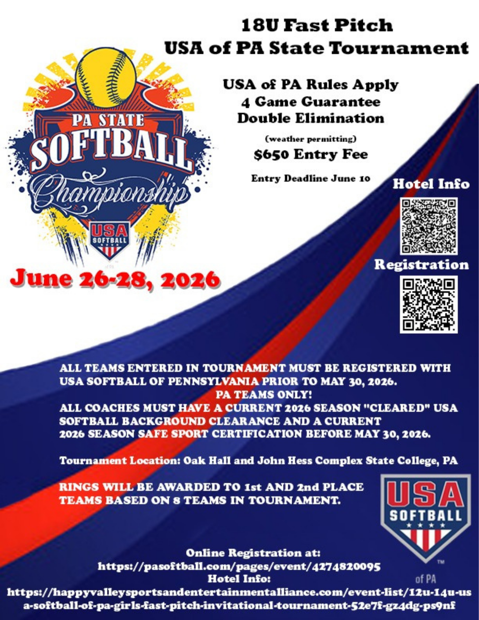 GIRLS’ 18U FAST PITCH USA OF PA STATE TOURNAMENT