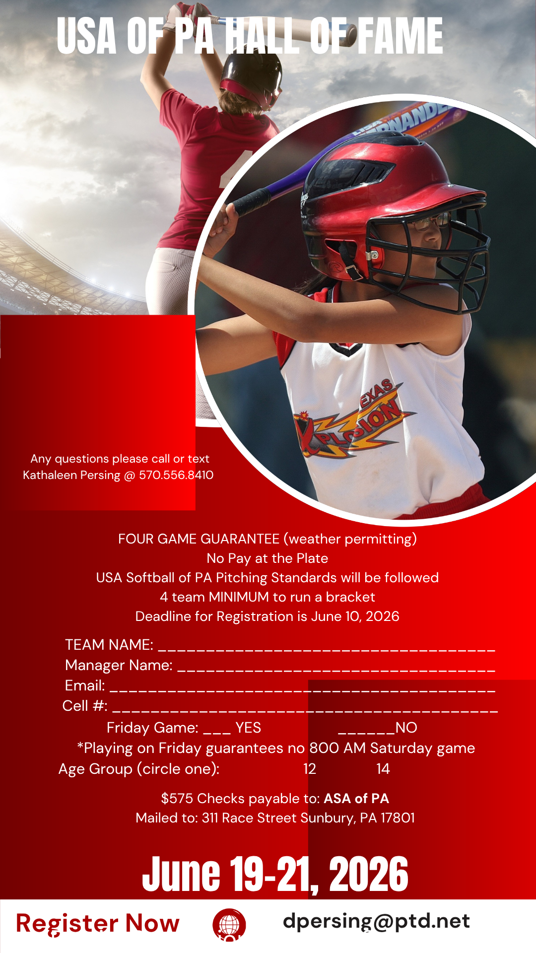 Registration Site: pasoftball.com